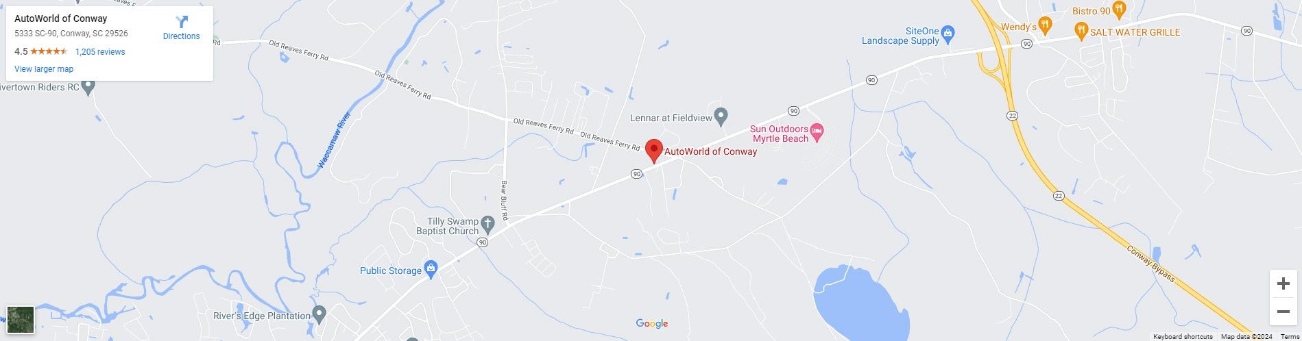 Since our founding in 2005, AutoWorld of Conway has been committed to offering quality pre-owned vehicles and exceptional service. We are proud to be a trusted name in the Horry County area, and our passion for providing affordable, reliable vehicles is evident in every aspect of our business. Whether you're in the market for a used car, truck, or SUV, or need expert vehicle service, AutoWorld of Conway is here to meet your automotive needs.