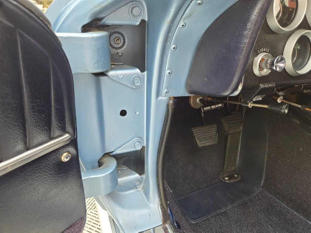 Recent Arrival, local acquisition. This is the one you have been looking for. Numbers matching, Fully documented with only 40k actual miles. Finished in hard to find Silver Blue paint, she looks just as good underneath as she does on the top. Frame off restoration completed just over 10 years ago, she still shows amazing. Everything has been touched, refurbished or replaced. Perfect chrome and stainless, perfect gaps and terrific fit and finish. The original L76 engine with the RE block still adorns the engine compartment. 6 quart oil pan, factory Winters intake...correct down to the hose clamps. You'll be hard pressed to find such a nice example. Knock off wheels with radial redline tires are the finishing touch to this stunning C2 Corvette. Correct jack, lead hammer, front license bracket included. Inside you'll find correct dark blue interior, seats, console, door panels and seatbelts. All instrumentation including the 6500 redline tachometer function properly and accurately. The instrument chrome is bright and fresh. The headliner, carpet and interior present in excellent condition. The engine is perfectly tuned and powerful. She starts the first time every time with no effort. She is turn key and ready to enjoy, from the wipers, horn and interior lights... take time and watch the 15 minute narrated walk around, driving and undercarriage video and see why this is a collector grade mid-year Corvette. She doesn't disappoint. Detailed photos available and included for engine, transmission and rear end stampings.