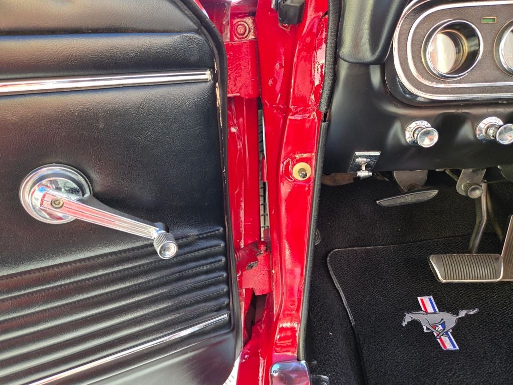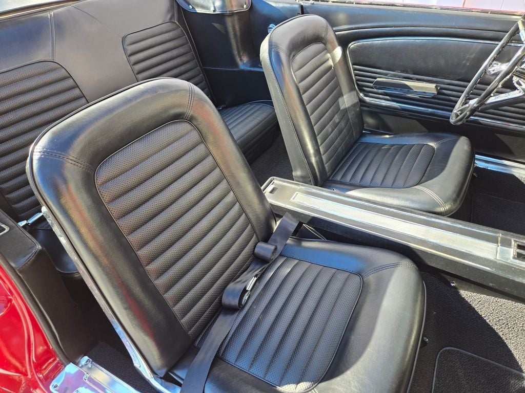 Have you been looking for an over-the-top, finely restored Mustang convertible? Look no further, this is the one that should top your list. This red over black c code convertible is one of the nicest available on the market. Almost everything on this Mustang is either, new, rebuilt or replaced. This car is highly optioned featuring a rebuilt 289 2V, power steering, power disc brakes, power top, ice cold air conditioning, steel styled wheels Bluetooth® radio and much more. The body is laser straight and the paint has a two feet deep shine that is highly polished to a mirror like finish. The interior is completely new including carpet, seat foam, seat belts and weather stripping to name a few. The fit and finish is outstanding. The windows function smooth and easily, all of the gauges function as they should. All chrome is brilliant and bright and like new. Attention to detail is phenomenal. Everywhere you look, you see the quality and care taken during the refurbishment. Take a quick peek at the undercarriage...her red oxide belly presents just as it would have when she left the factory when new. Driving this car may be the best part of the experience. She drives like none other that we have offered in our 20 year history. The steering is straight, true and responsive. The engine is smooth and powerful and the transmission shifts with ease. The sound is intoxicating and makes you want to continue driving for hours. Turn up the radio, put the top down, touch the key and take her away. Take a close look at nearly 100 detailed photos, watch the 14 minute narrated walk around, driving, and undercarriage video and judge for yourself why this should be the next car in your garage. You will not be disappointed with this outstanding Mustang convertible.
